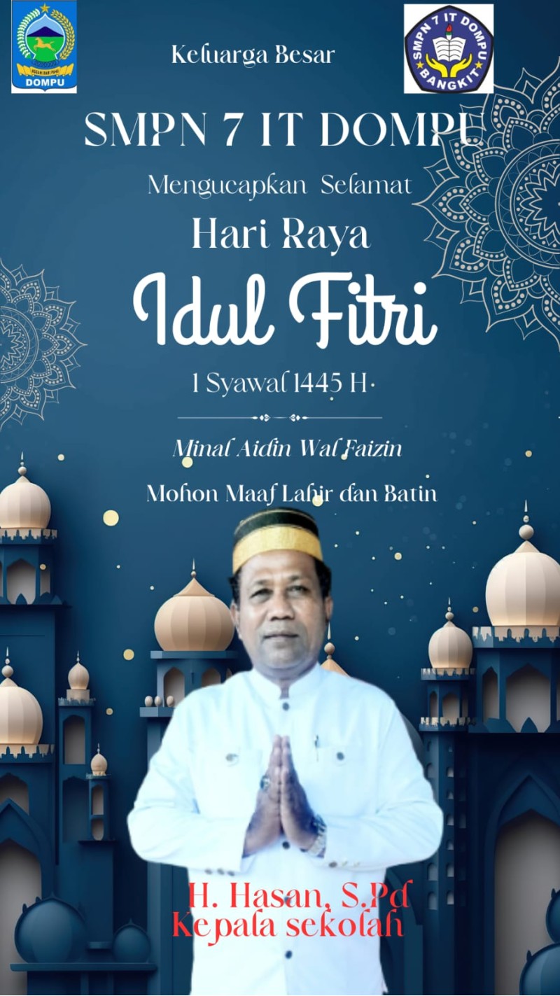Keluarga Besar SMP Negeri 7 IT Dompu mengucapkan selamat Hari Raya Idul Fitri 1 Syawal 1445 H.